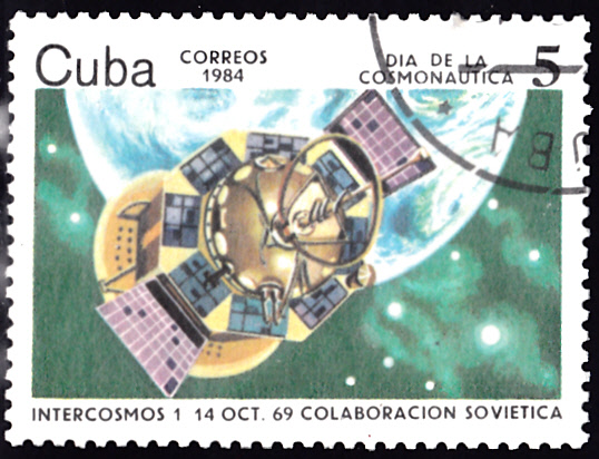Auf einer Marke aus Kuba (MiNr 2846) ist Interkosmos 1 zu sehen.