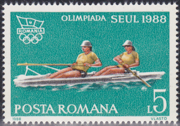 Die Markenserie aus Rumänien wird komplettiert mit dieser Marke (MiNr 4482) mit einem Zweier beim Rudern.