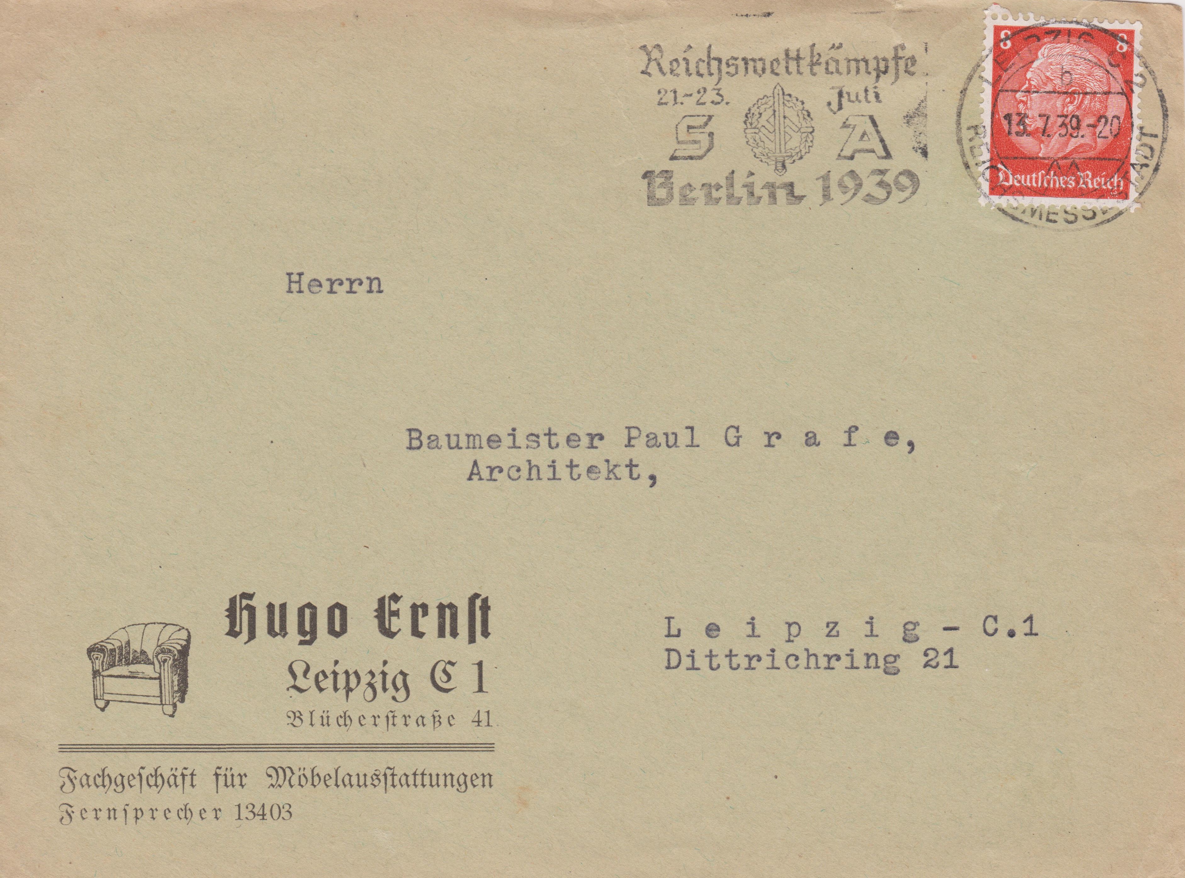 Briefvorderseite eines am 13.07.1939 im Ortsverkehr von Leipzig gelaufenen Briefes:
