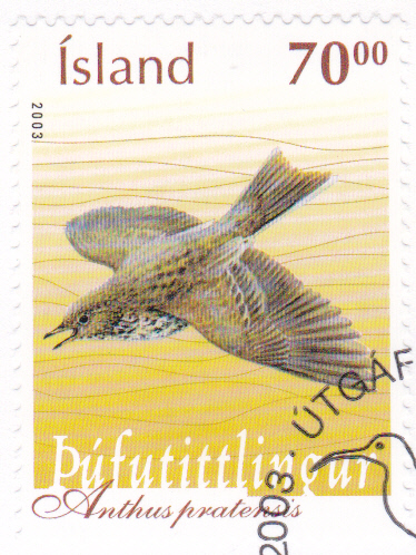 Hier eine belgische Marke aus der Serie "Vögel" (MiNr 2971) mit einem Wiesenpieper (Anthus pratensis).