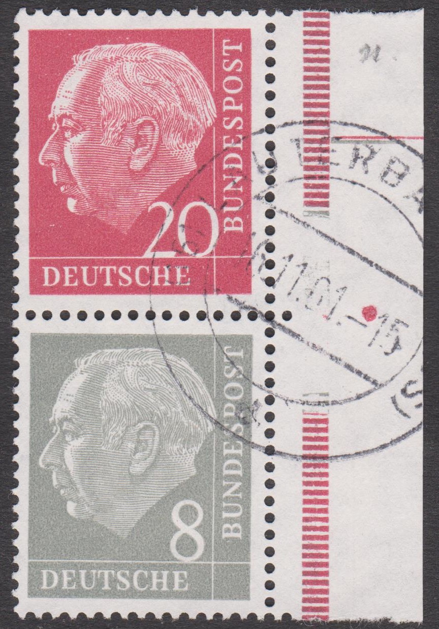 Zusammendruck S 51 X vom rechten Bogenrand mit Tagesstempel "(16) LAUTERBACH 16.11.61":