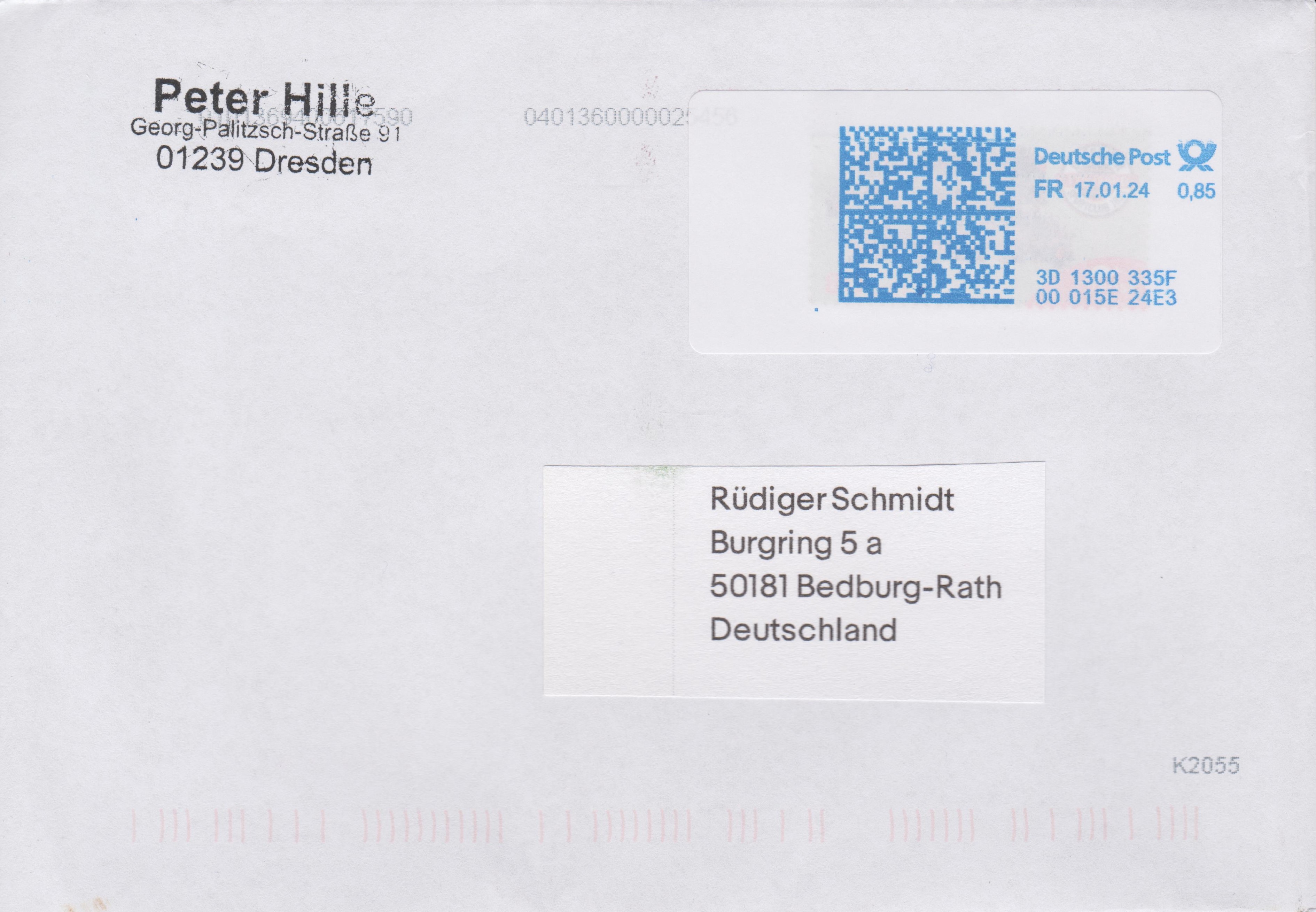 hier habe ich einen Beleg, der am 7.3.18 in Berlin bei der „pin Mail“ aufgegeben wurde. Er wurde dem Nordbrief übergeben und laut deren Codierung am 8.3.18 schon bearbeitet und zugestellt. Als Frankatur wurde eine 69 ct-Marke verklebt, die als Motiv einen radelnden Postboten vor dem Brandenburger Tor zeigt.
