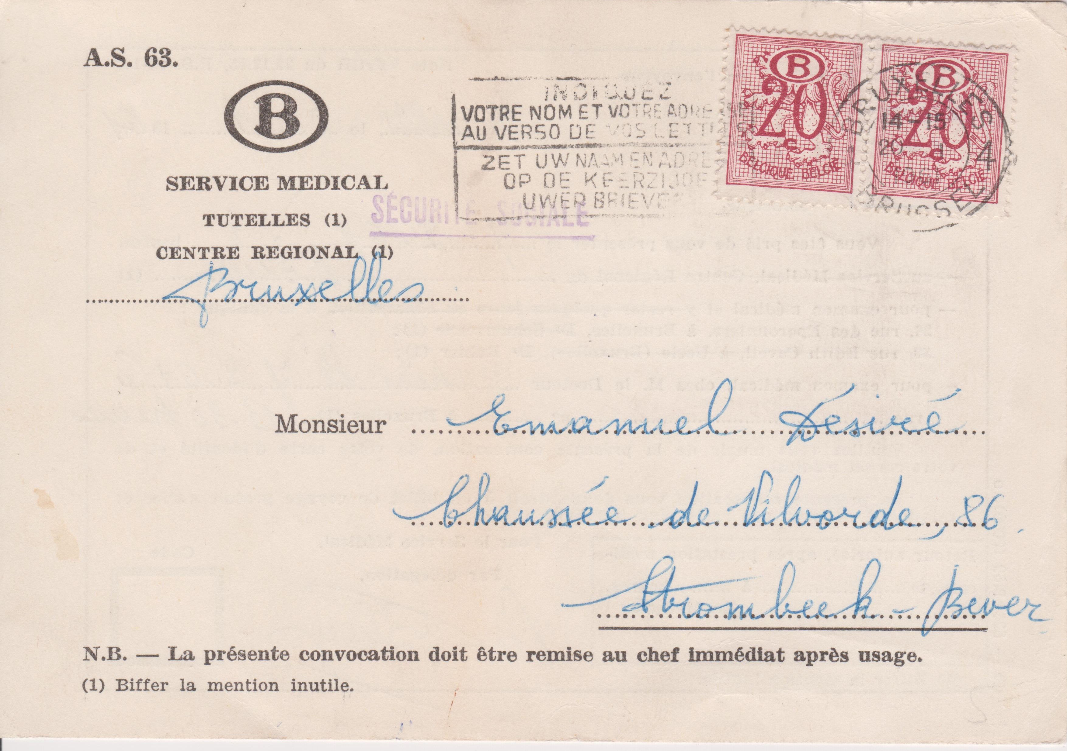 Am 15.06.1962 auf einer Sendung "SERVICE MEDICAL SÉCURITÉ SOCIALE" ab GOSSELIES: