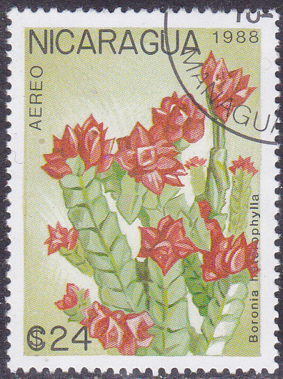 Auf dieser Marke aus Nicaragua (MiNr 2913) sind Blüten von Boronia heterophylla zu sehen.