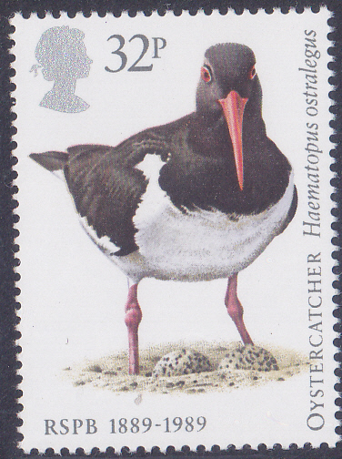 Dieser Austernfischer (Haematopus ostralegus) kommt aus Großbritannien (MiNr 1187) aus einer Serie "100 Jahre Königliche Vogelschutz-Gesellschaft (RSPB)".