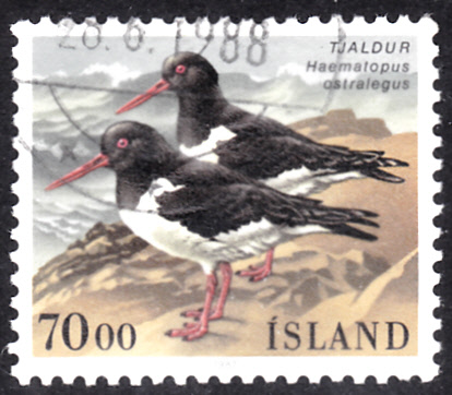 Auch in Island ist eine Marke (MiNr 670) mit einem Austernfischer (Haematopus ostralegus) erschienen.