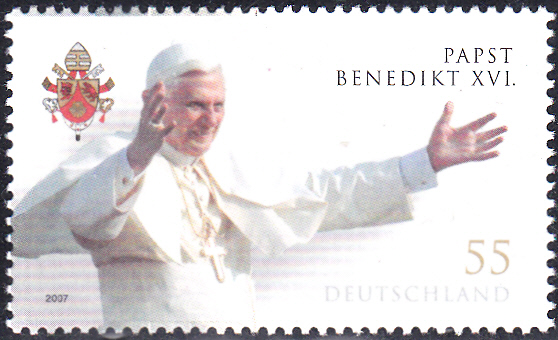 Zum 80. Geburtstag von Papst Benedikt XVI erschien be der Deutschen Post diese (bereits mehrfach auf Brief gezeigte) Marke (MiNr 2599) mit Papst Benedikt XVI.