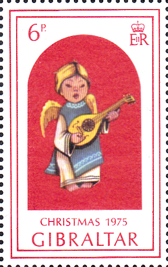 Es folgt die Marke MiNr 329 mit einem Engel mit einer Laute.