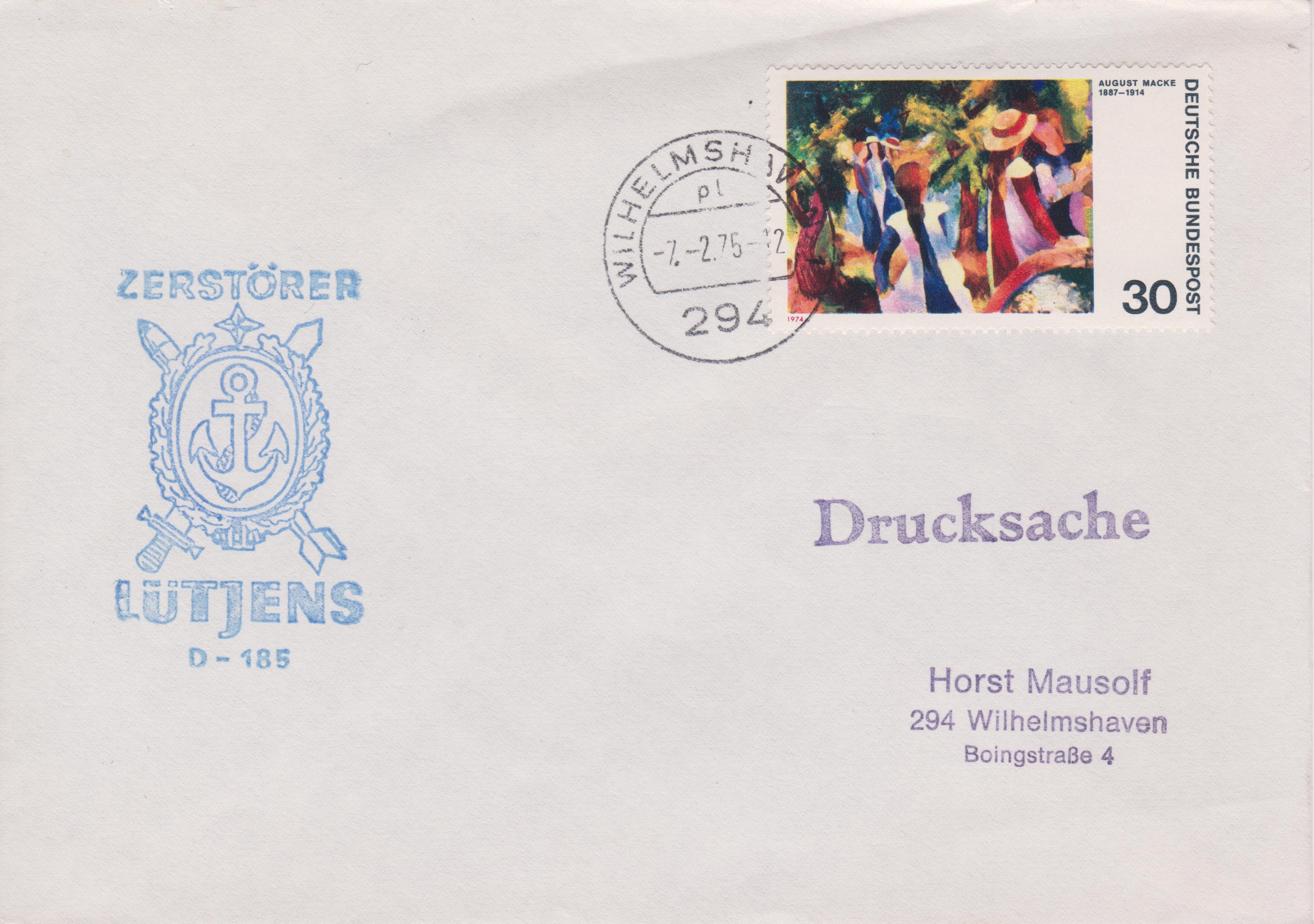Diese Drucksache, aufgegeben am 07.02.1975 in WILHELMSHAVEN dokumentiert den Bordstempel: