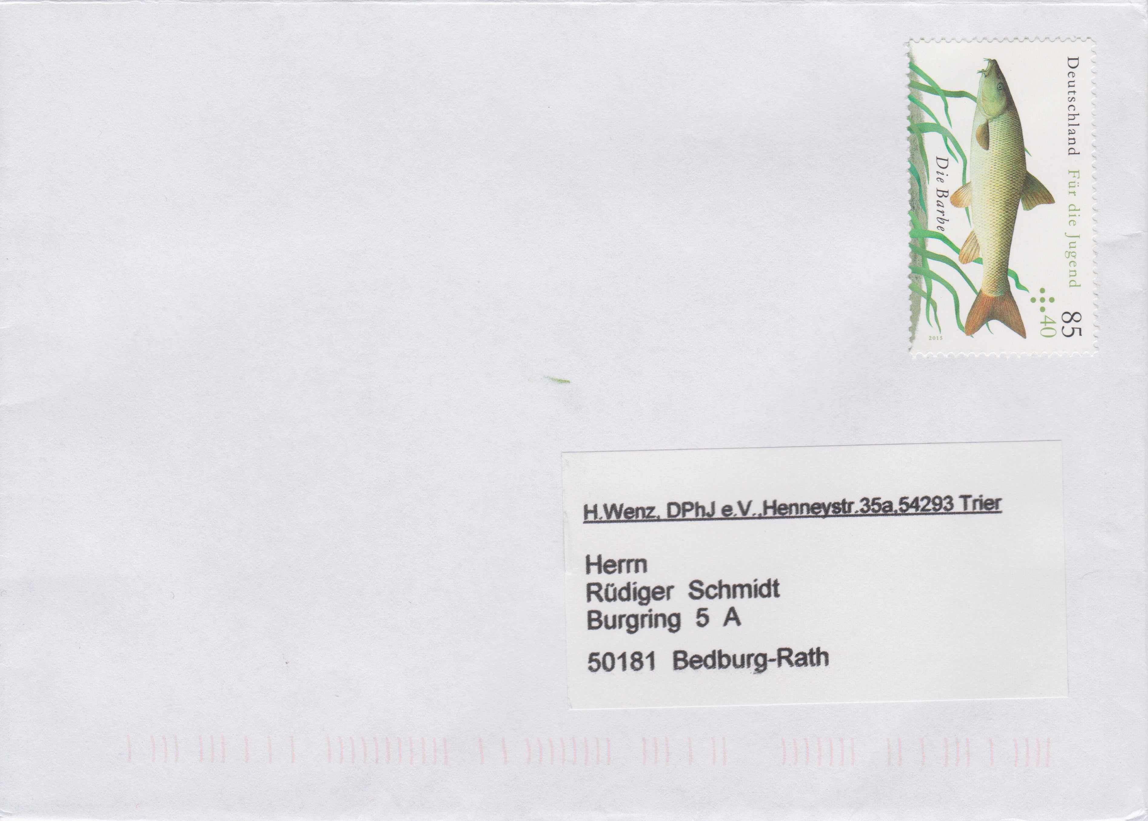 Auf diesem Beleg aus meinem aktuellen Posteingang schnappt die Barbe gerade nach Luft und entging so der Stempelung: