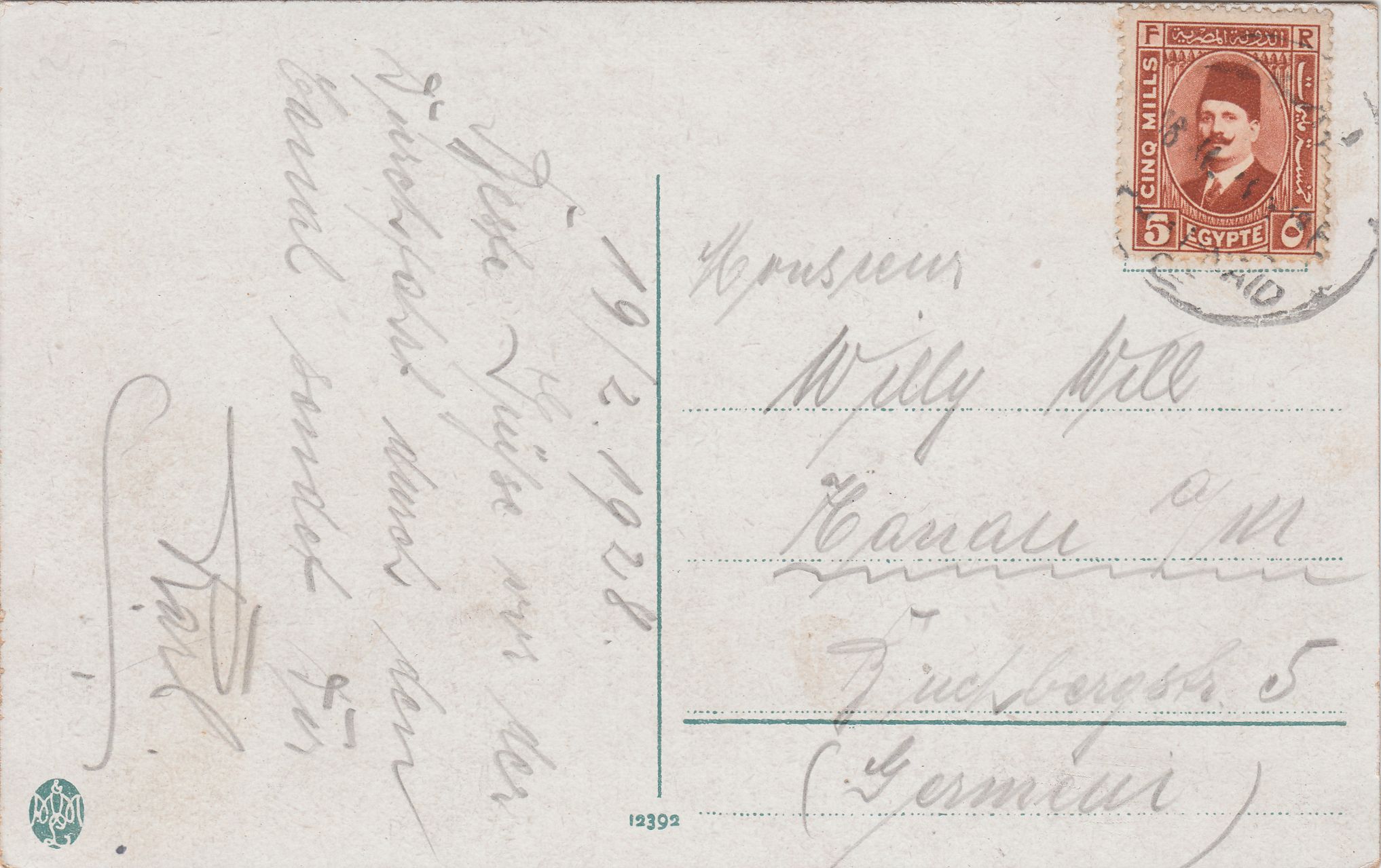 Mit dieser Postkarte wurde am 19.02.1928 ein Gruss von einer Fahrt durch den Suezkanal gesendet: