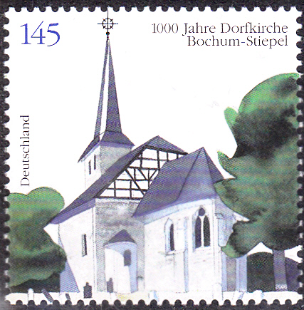 Aus Anlass "1000 Jahre Dorfkirche von Bochum-Stiepel" ist bei der Deutschen Post diese Marke (MiNr 2646) mit der Dorfkirche Bochum-Stiepel erschienen.