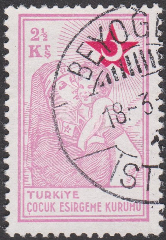 Türkei MiNr. 53 Kinderhilfe 1 KURUS hellblau/karmin erschien am 08.02.1940 in einer Auflage von 2 000 000 Stück: