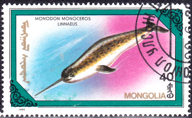 Diese Marke aus der Mongolei (MiMr 2143) zeigt einen Narwal (Monodon monoceros).