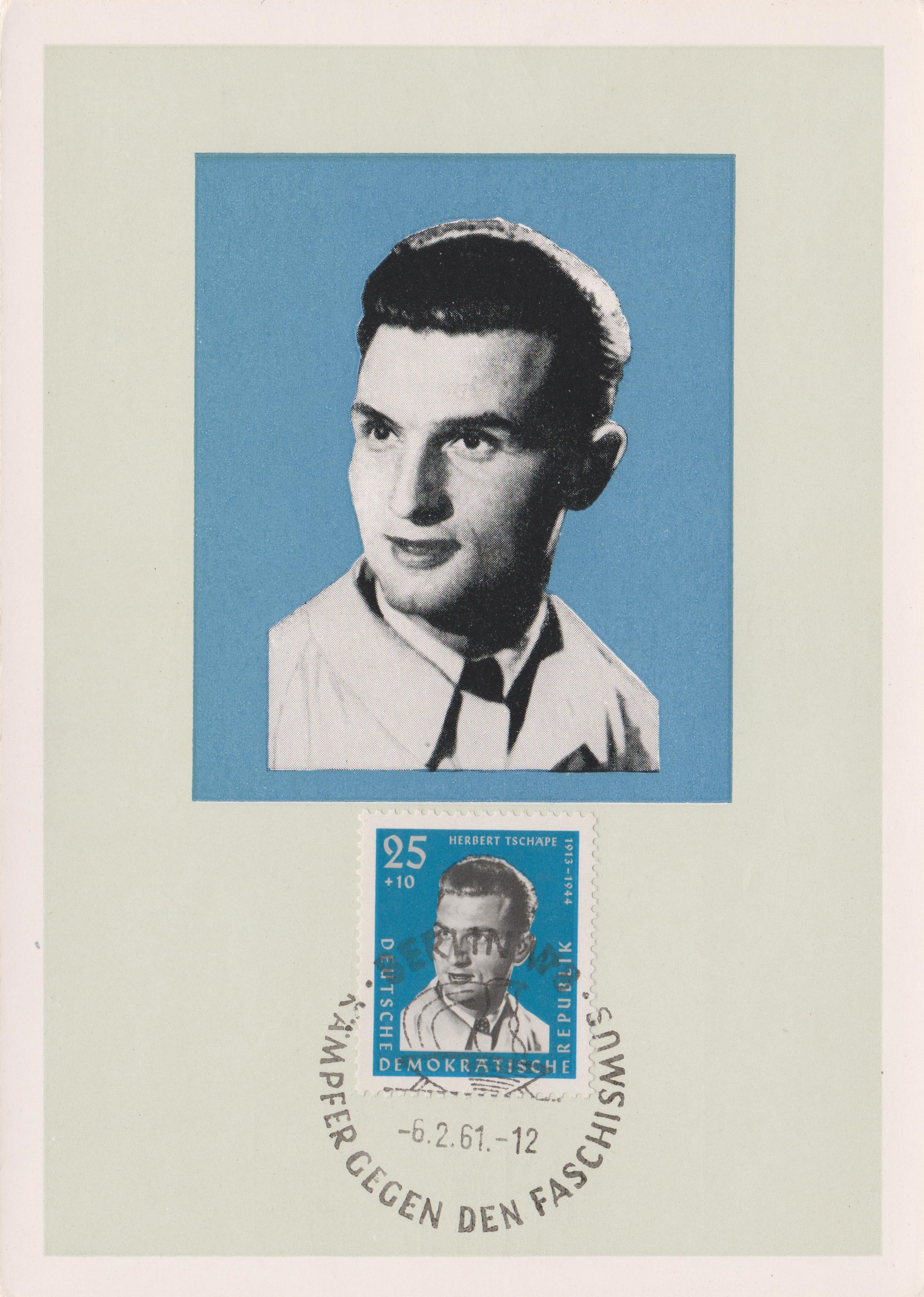 DDR MiNr. 812 aus dem Satz zum Thema "KZ-Opfer" zeigt Herbert Tschäpe, hier als Maximumkarte: