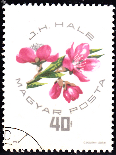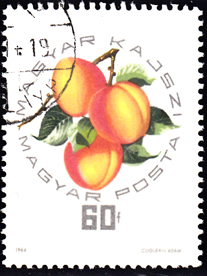 Aus einer Serie zur Nationale Aprikosenausstellung in Szegedin ist in Ungarn diese Marke (MiNr 2044 A) mit einem blühenden Aprikosenzweig erschienen.