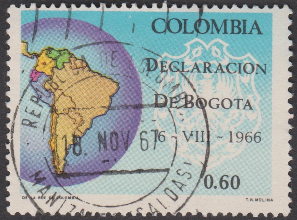 Kolumbien MiNr. 1096 zeigt eine Landkarte von Südamerika: