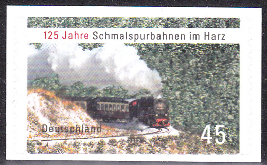 In der Serie "Sehenswürdigkeiten in Deutschland" ist diese Marke (MiNr 3817) mit der Abbildung einer Lokomotive der Brockenbahn vor der Gipfelstation erschienen. Hier zeige ich eine Marke vom Eckrand mit EAN-Codierung.
