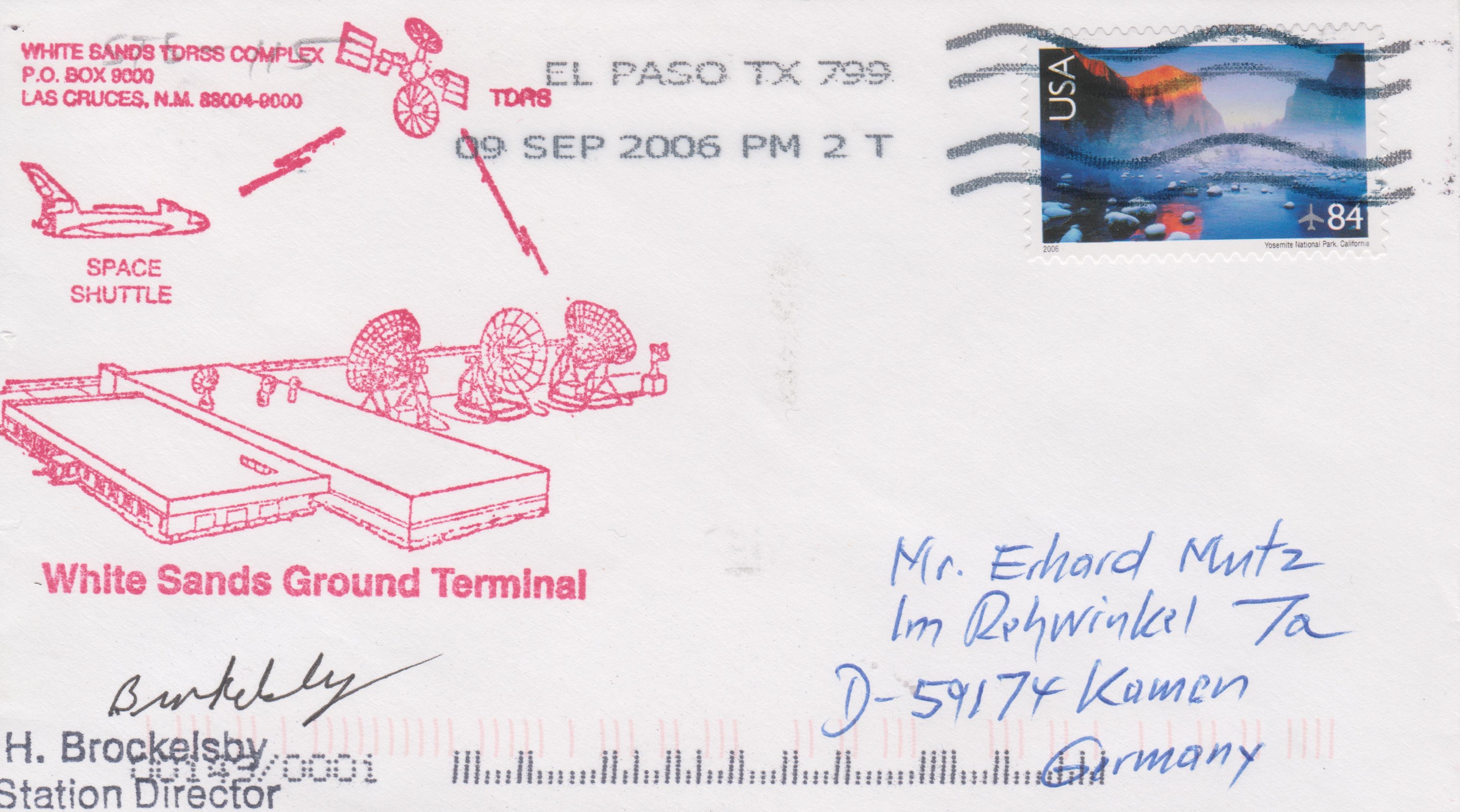 Dieser Beleg von der Tracking-Station White Sands, El Paso, dokumentiert den Start von Space Shuttle Sojus im Rahmen der Mission STS-115 am 09.09.2006: