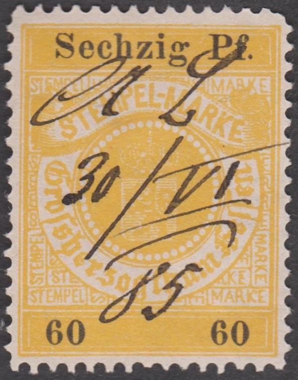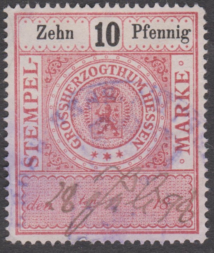 Stempelmarke 5 Goldmark GROSSHERZOGTUM HESSEN mit Aufdruck "VOLKSSTAAT HESSEN":
