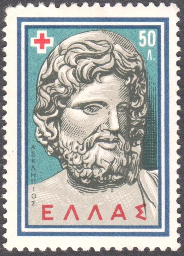 Griechenland MiNr. 715 erschien am 21.09.1959 zum 25. Internationalen Kongress des Roten Kreuzes und zeigt als Motiv Asklepios: