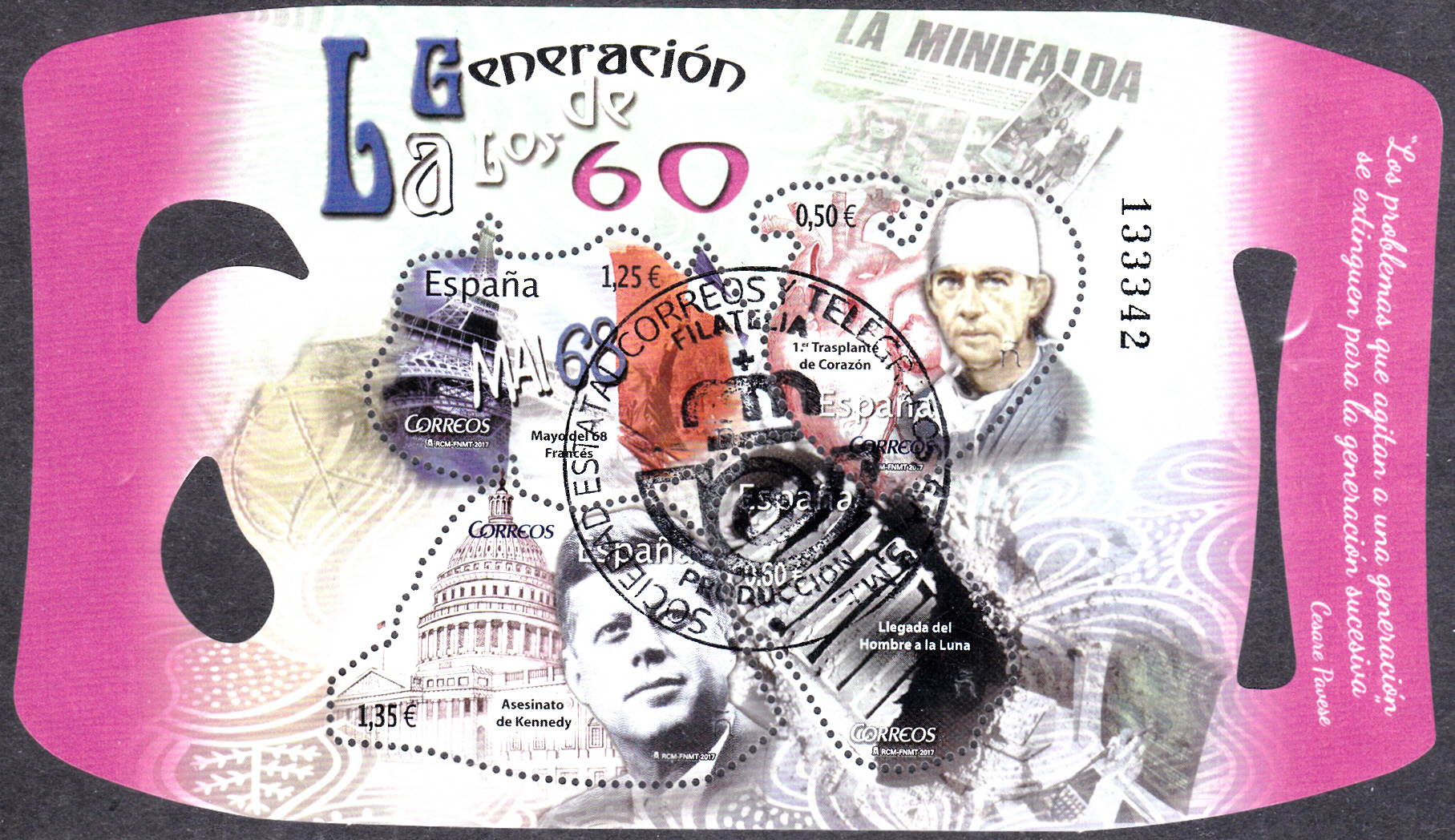 Dieser Block "Generation der 1960er" aus Spanien (MiNr Block 295 mit den Marken MiNr 5178 bis 5181) zeigt auf der Marke zu 0,50€ ein Porträt von Christiaan Barnard und ein menschliches Herz.