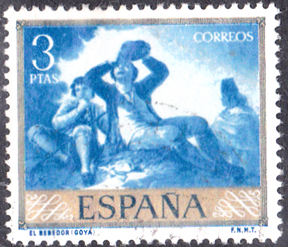 Die Marke zu 3 Pta (MiNr 1116) zeigt das Gemälde "Der Trinker" von Francisco de Goya.