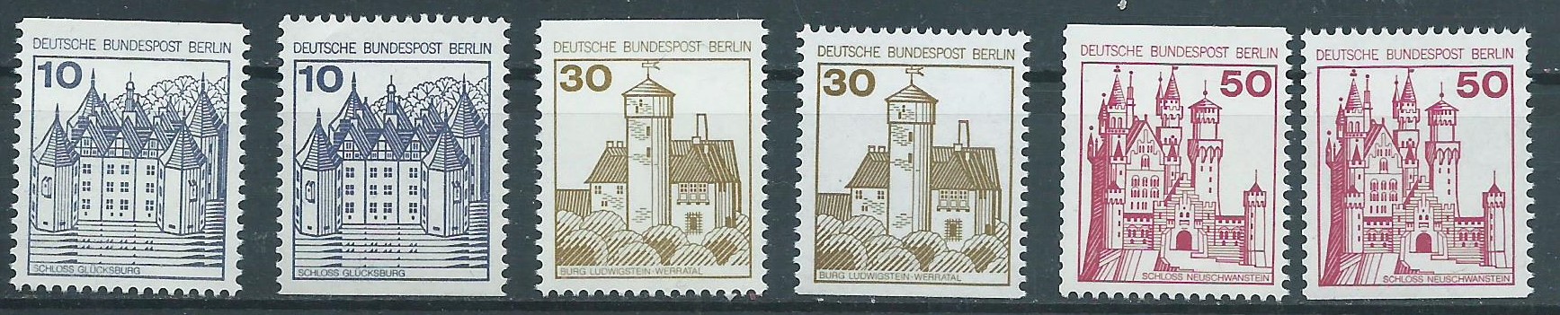 einige Marken der Serie Burgen und Schlösser wurden auch als Markenheftchen aufgelegt. Hier haben wir die Werte zu 10, 30 und 50 Pf, jeweils als Zusammendruck im 8-er-Block. Auffällig sind hier die oben und unten geschnittenen Marken. Oftmals wurden die Markenheftchen, wenn sie denn gestempelt mal zu erhalten sind, von der Versandstelle Berlin 12 abgestempelt. Hier habe ich ein Heftchen 10 mit dem eingeklebten Heftchenblatt 18, welches in Berlin 65 am 6.9.79 abgestempelt wurde. Wenn Euch also komplette Heftchen oder lose Heftchenblätter über den Weg laufen, dann macht Ihr nie etwas falsch, andere Abstempelungen als Berlin 12 im Tausch oder Kauf mit zu nehmen.