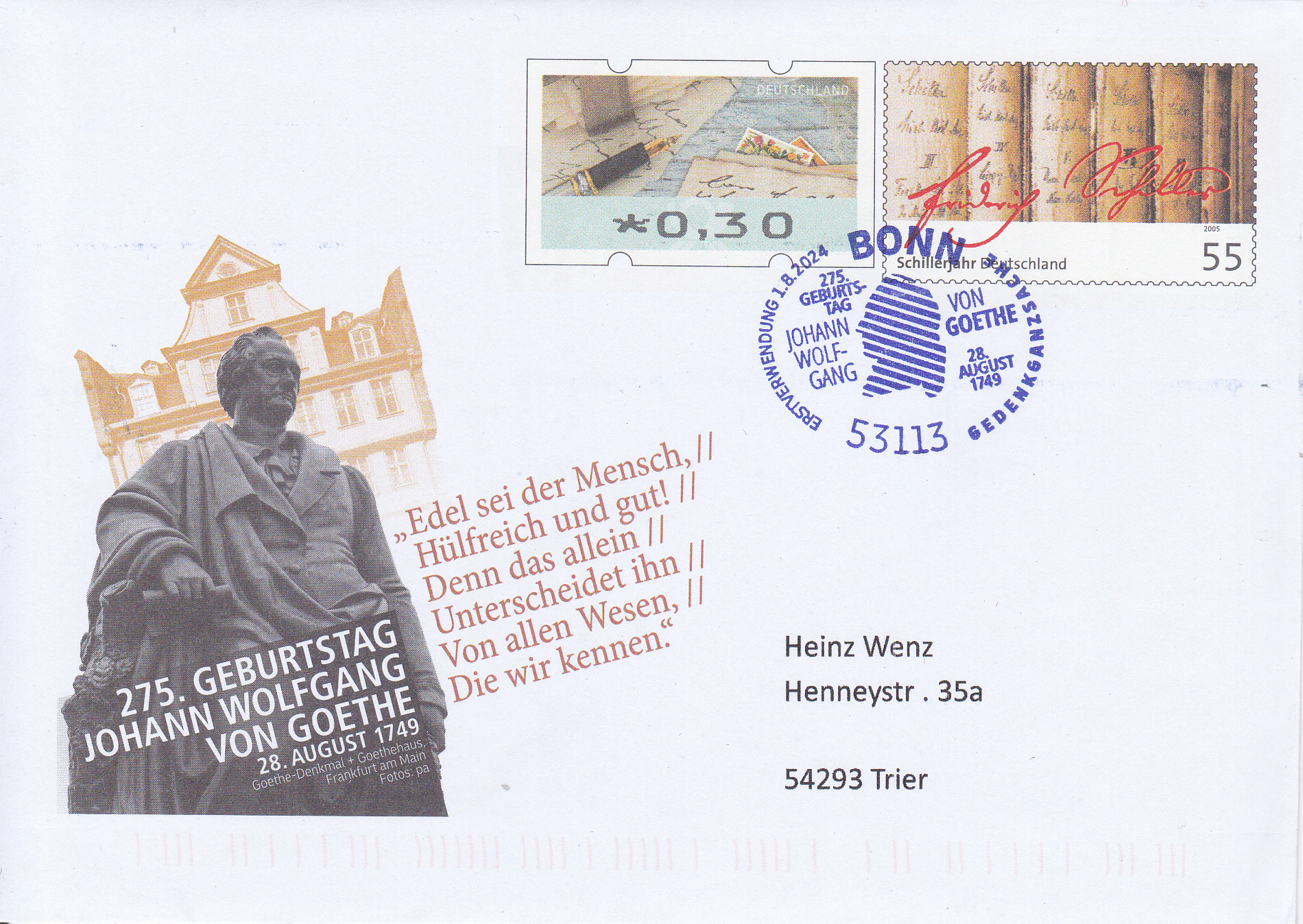 Karte, leider nicht gelaufen, mit einem Sonderstempel aus Ilmenau vom 17.7.1982 mit einer Unterschrift von Goethe und dem Zusatz "Goethestadt".