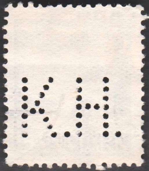 Postwertzeichen aus Dänemark mit Firmenlochung "K.H.":