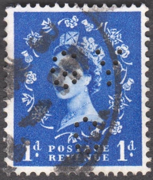 Postwertzeichen aus Großbritannien mit Firmenlochung "G Y C":