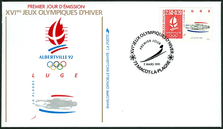 "Grußpost aus Albertville". Sieht nach einer netten Aktion für die Sammler aus. Aber ein dekorativer Luftpostumschlag.