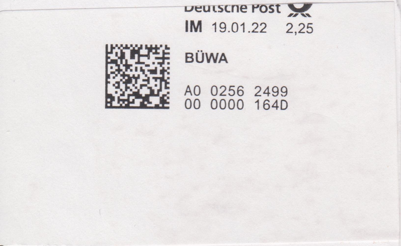 Selbstklebende Internetmarke = IM vom 19.01.2022, Wertstufe "2,25" für eine "BÜWA" = Bücher- und Warensendung: