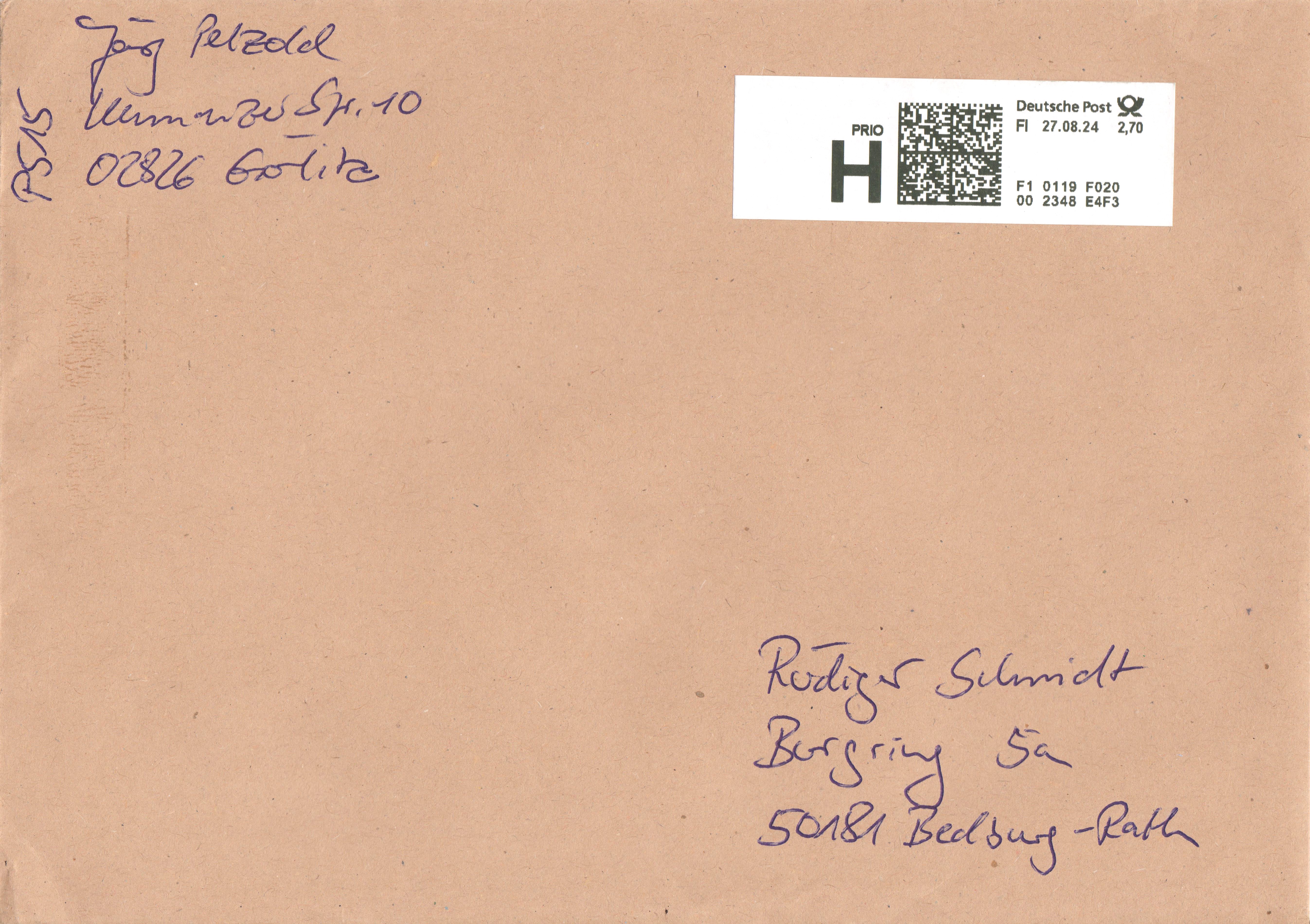 Brief mit PRIO H Label mit Wertangabe 2,70 vom 27.08.24: