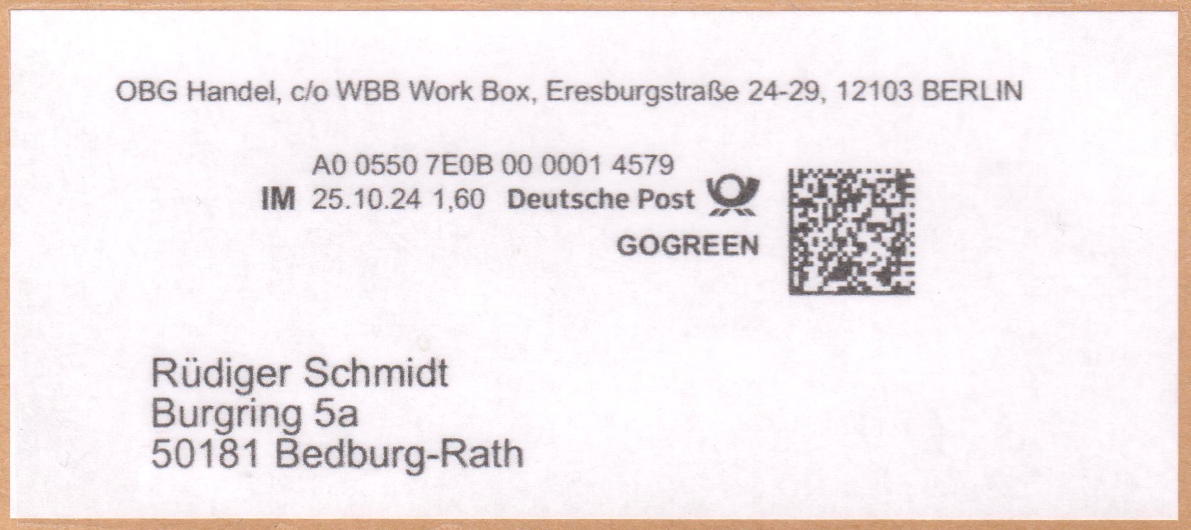 Internetmarke = "IM" am 08.10.2024 auf Brief = Portostufe 1,60 € mit Zusatz GOGREEN: