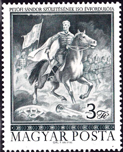 Auf einer dritten Marke (MiNr 2830 A) der Serie ist Petőfi im Freiheitskampf 1848-1849 dargestellt.