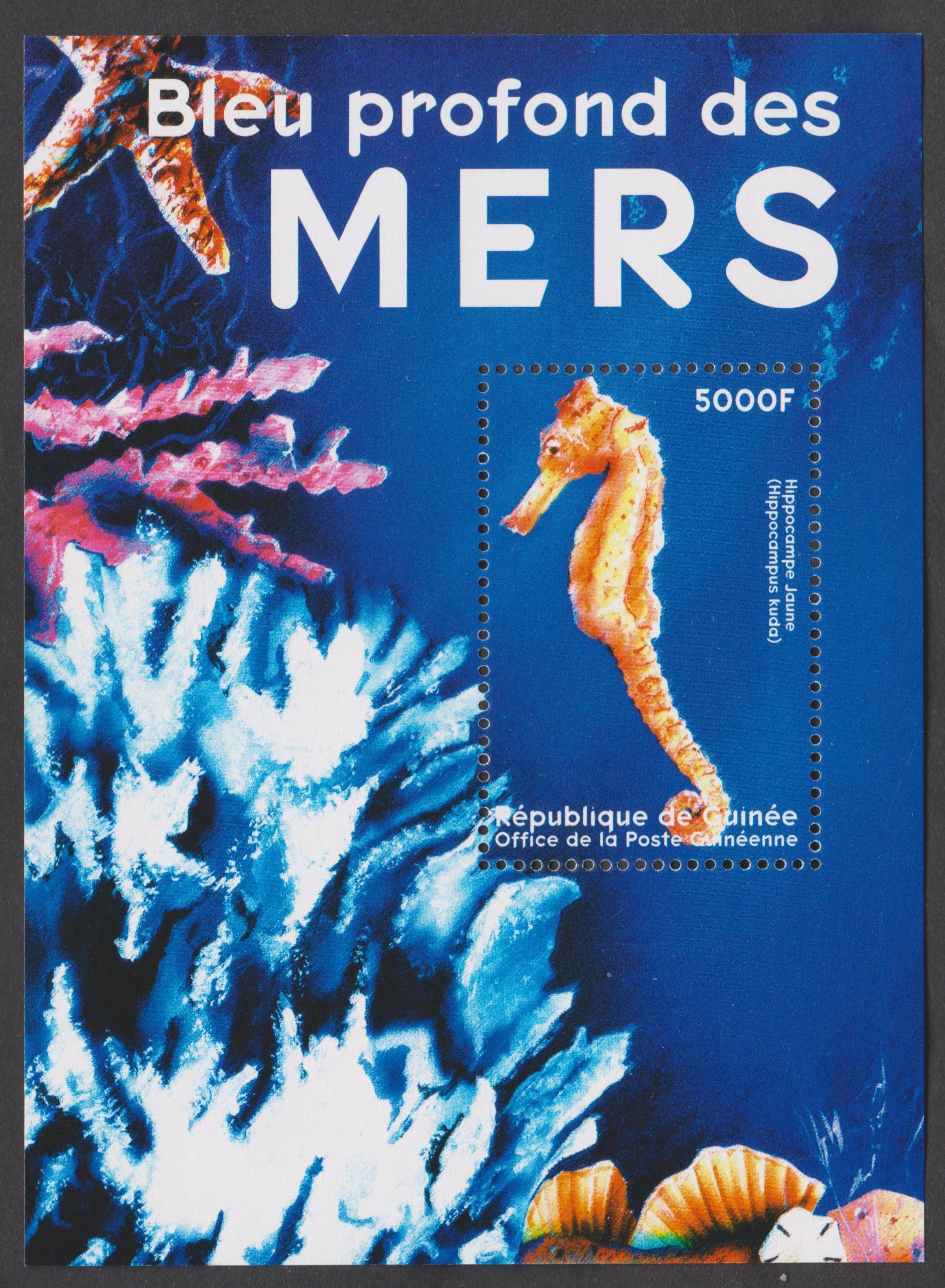 Dieser Block aus Guinea zeigt im eingedruckten Postwertzeichen ein Seepferdchen: