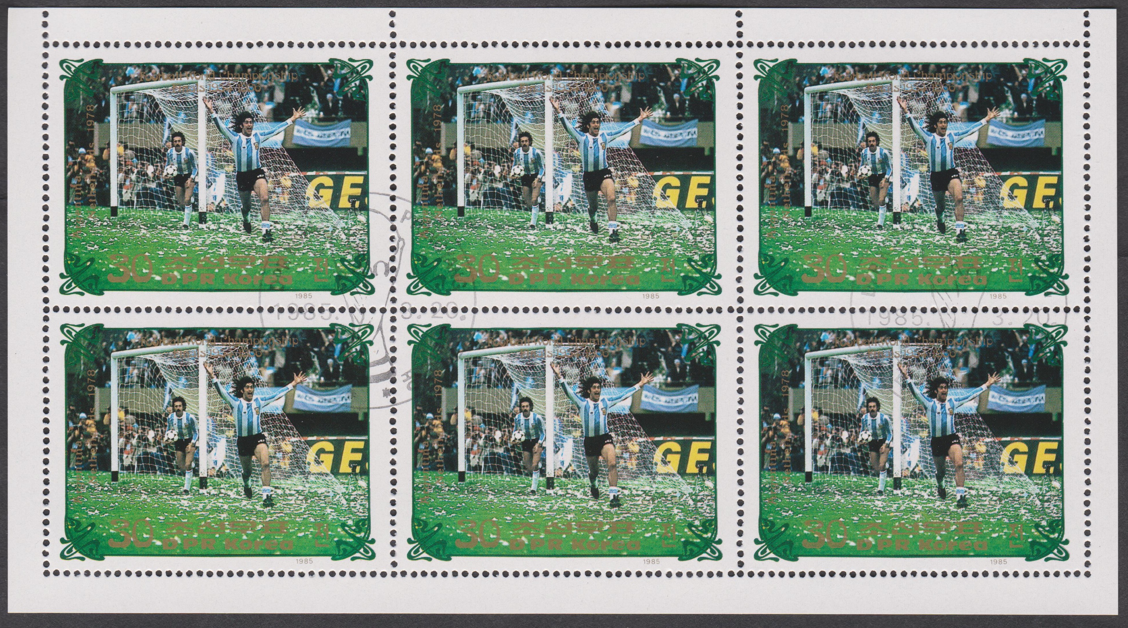 Nordkorea MiNr. 2650, hier als Kleinbogen 2x3, würdigt das Endspiel der WM 1978 Argentinien - Niederlande: