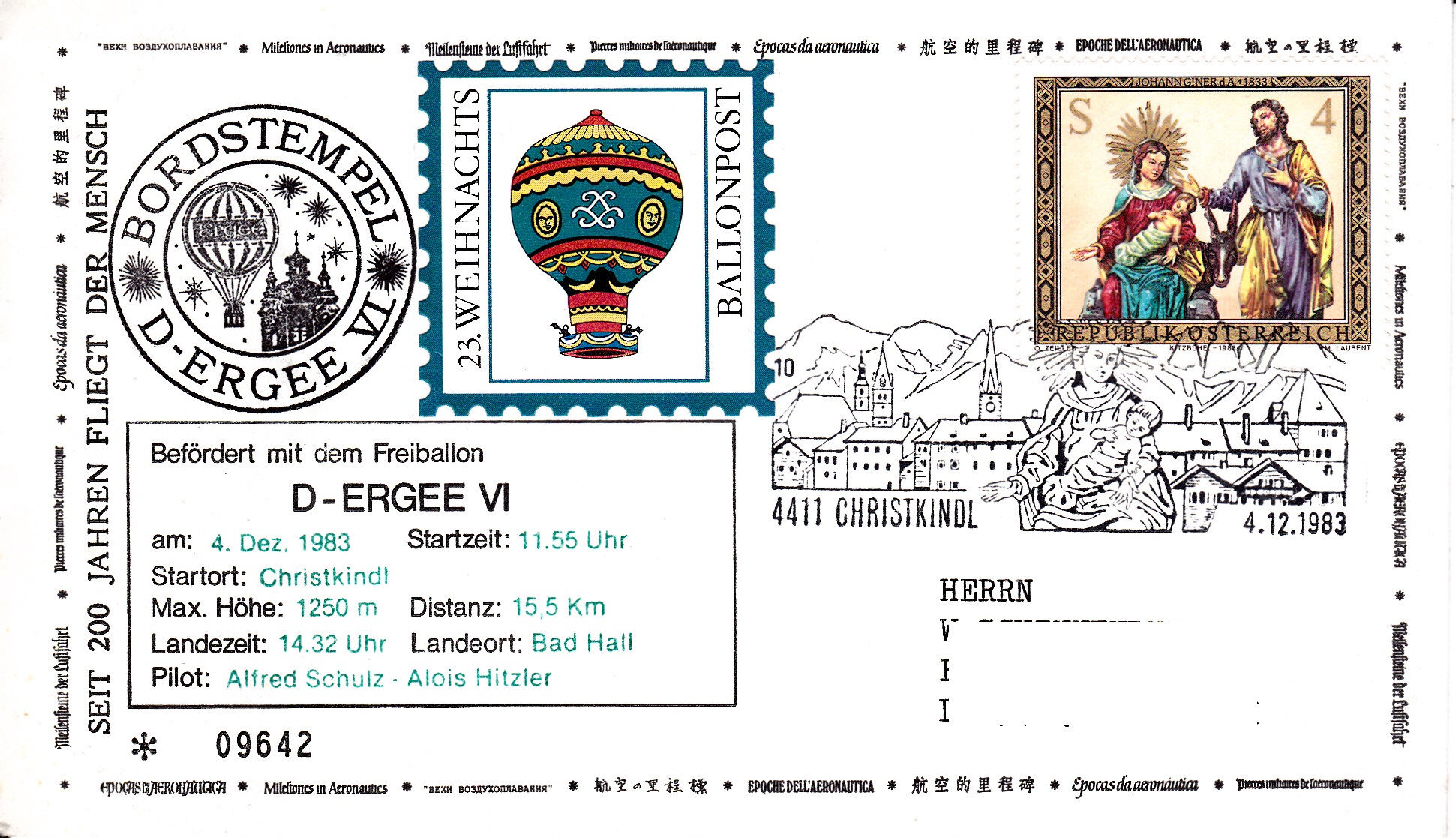 Dieser Briefumschlag der 23.Weihnachtsballonpost wurde mit dem Stempel mit der Kennziffer "10" gestempelt: