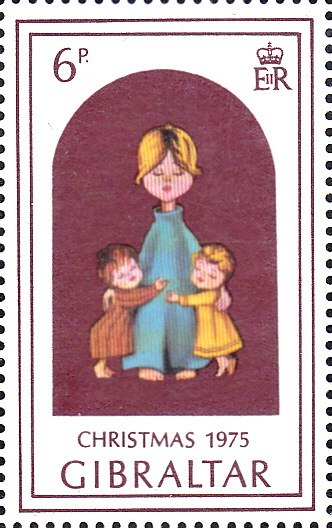 Eine Mutter mit zwei Kindern zeigt die nächste Marke der Serie aus Gibraltar (MiNr 331).