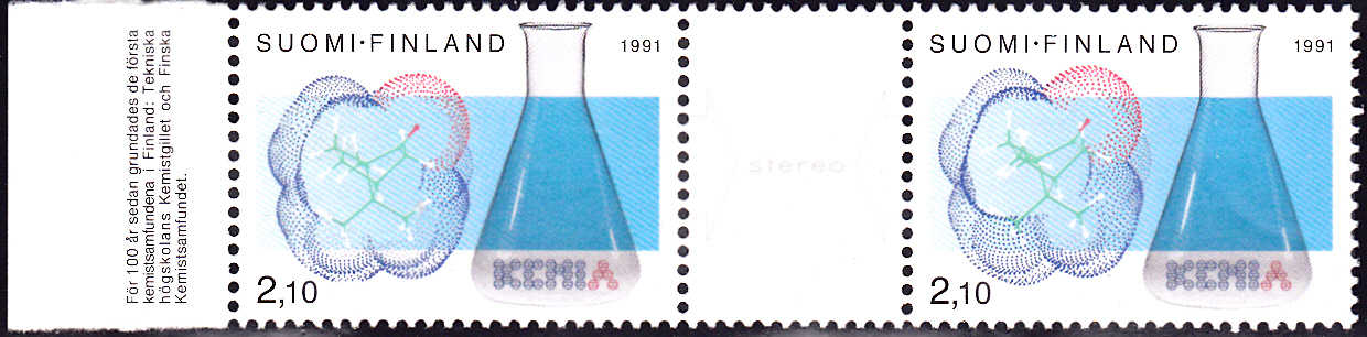 In Finnland sind zum 100. Jahrestag der Gründung der Vereinigung der Chemiker und der Finnischen Chemischen Gesellschaft zwei fast identische Marken (MiNr 1157 und 1158) mit einer Darstellung eines Kampfermoleküls (Summenformel C10H16O) und einem Erlenmeyerkolben erschienen. Sie wurden mit einem Zierfeld waagerecht zusammenhängend gedruckt und von der Zentralstelle für Philatelie nur unzertrennt abgegeben. Die beiden Marken bilden ein sogenanntes "Stereopaar". Bei entsprechender, gleichzeitiger Betrachtung beider Marken soll ein dreidimensionales Bild entstehen.
