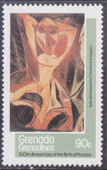 Die zweite Marke (MiNr 443) dieser Ausgabe aus Grenada/Grenadinen zeigt eine Studie für die Mädchen aus Avignon von Pablo Picasso.