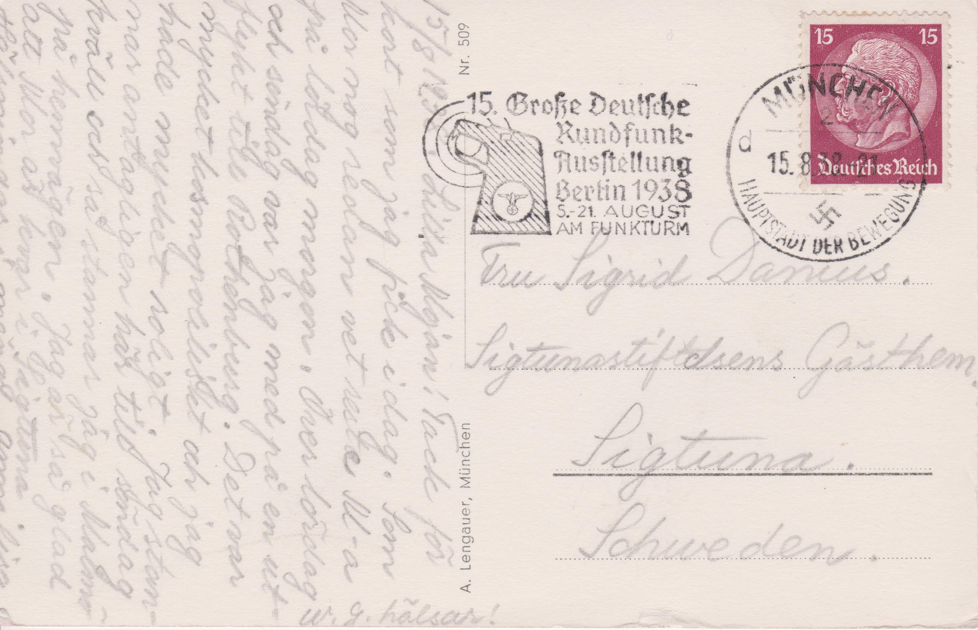 Die Portostufe 15 Pf galt für Postkarten ins Ausland ab dem 01.01.1925.