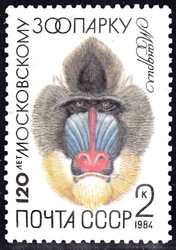 Heute kann ich weitere Marken dieser Serie zeigen. Der Wert zu 2 Kopeken (MiNr 5356) zeigt den Kopf eines Mandrill (Mandrillus sphinx).