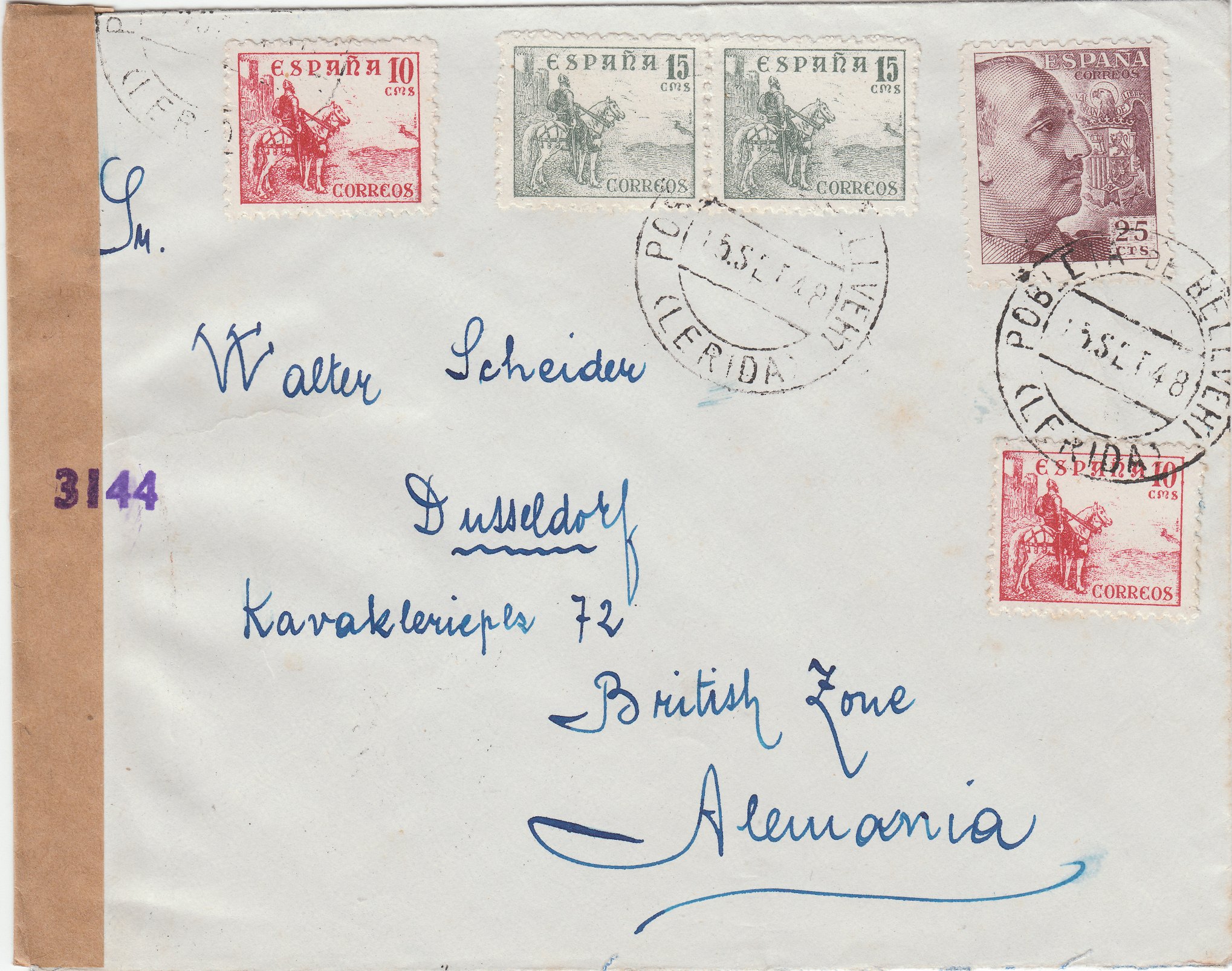 Schließlich wurde auch die britische Krone aptiert und es bleib nurmehr die vierstellige Zahl übrig, wie auf diesem Brief vom 15.09.1948 aus Spanien nach Düsseldorf zur Dokumentation des Briefverschlusses per neutralem Verschlußzettel zu sehen:
