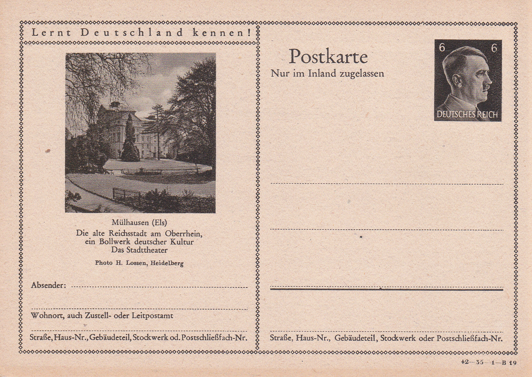 Wir bleiben auch bei der nächsten Karte (Serie 35 Bild 19) in Mühlhausen. Sie bildet das Stadttheater ab.