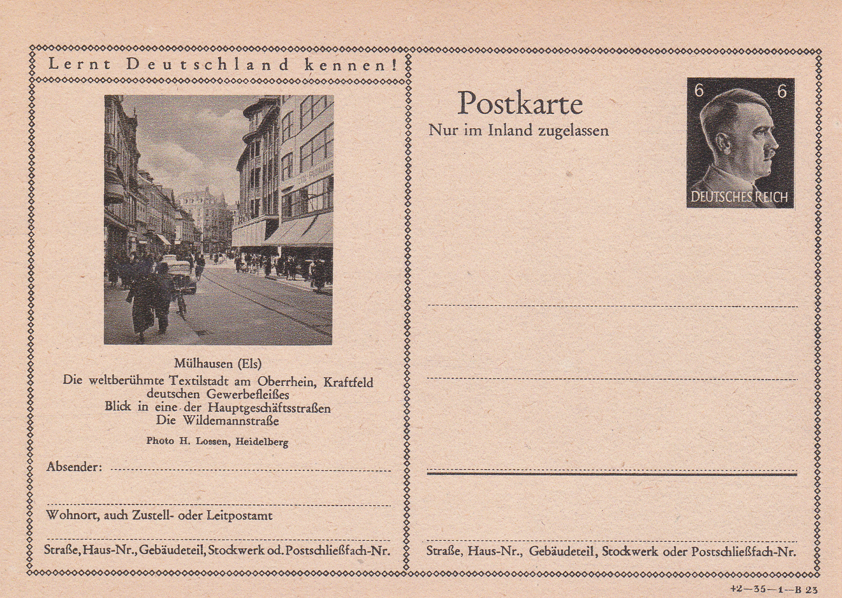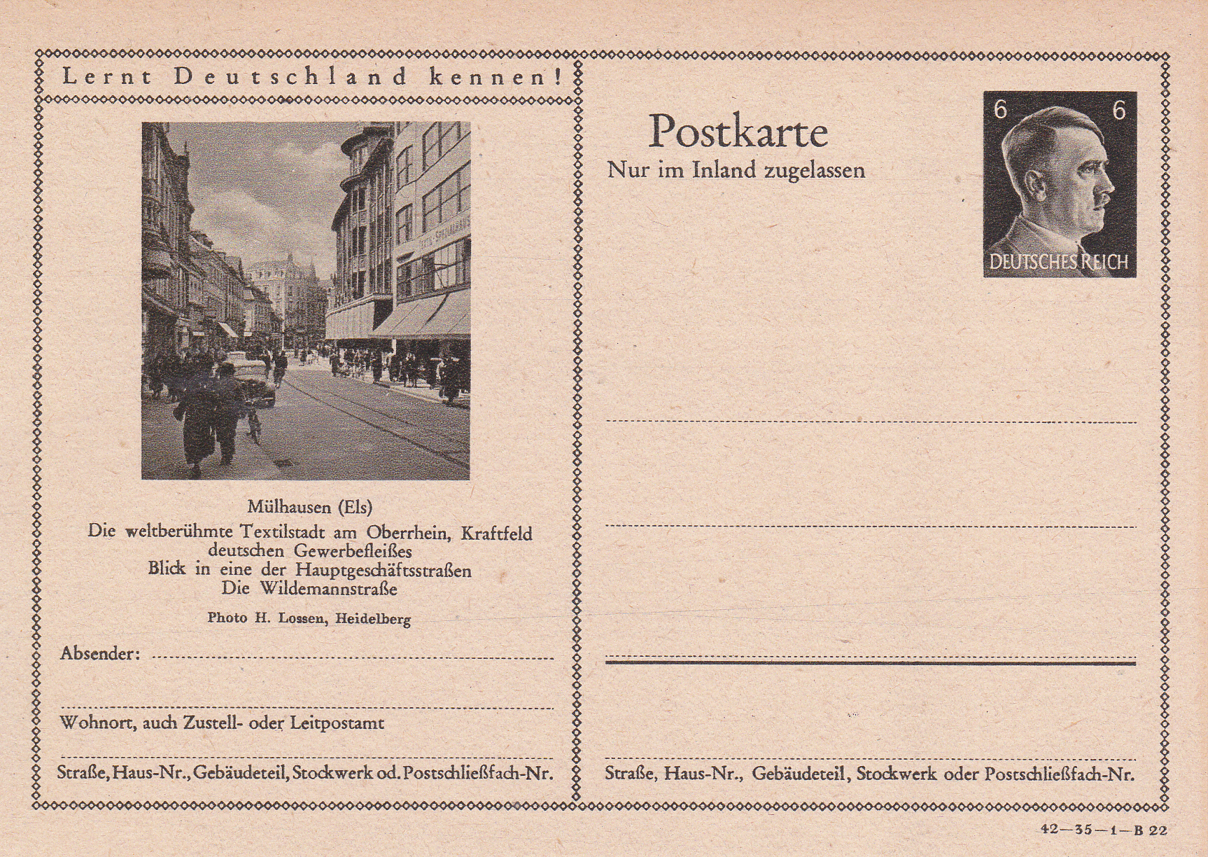 Eine weitere Karte (Serie 35 Bild 22) zeigt ein Foto mit der Wildemannstraße in Mülhausen (Elsass).