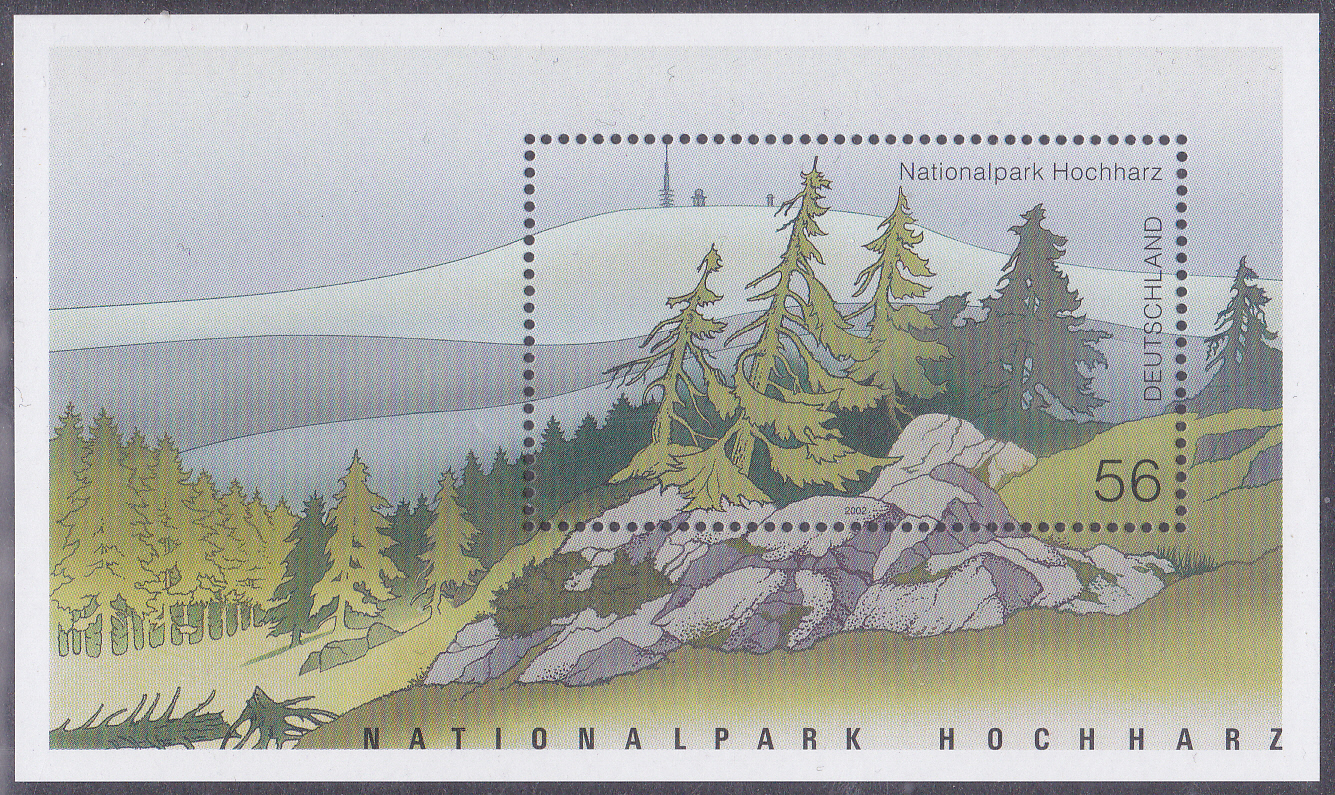 Bei der Deutschen Post ist ein Block (MiNr Block 59 mit Marke MiNr 2268) zum Nationalpark Hochharz erschienen. Hier zeige ich einen postfrischen Block.