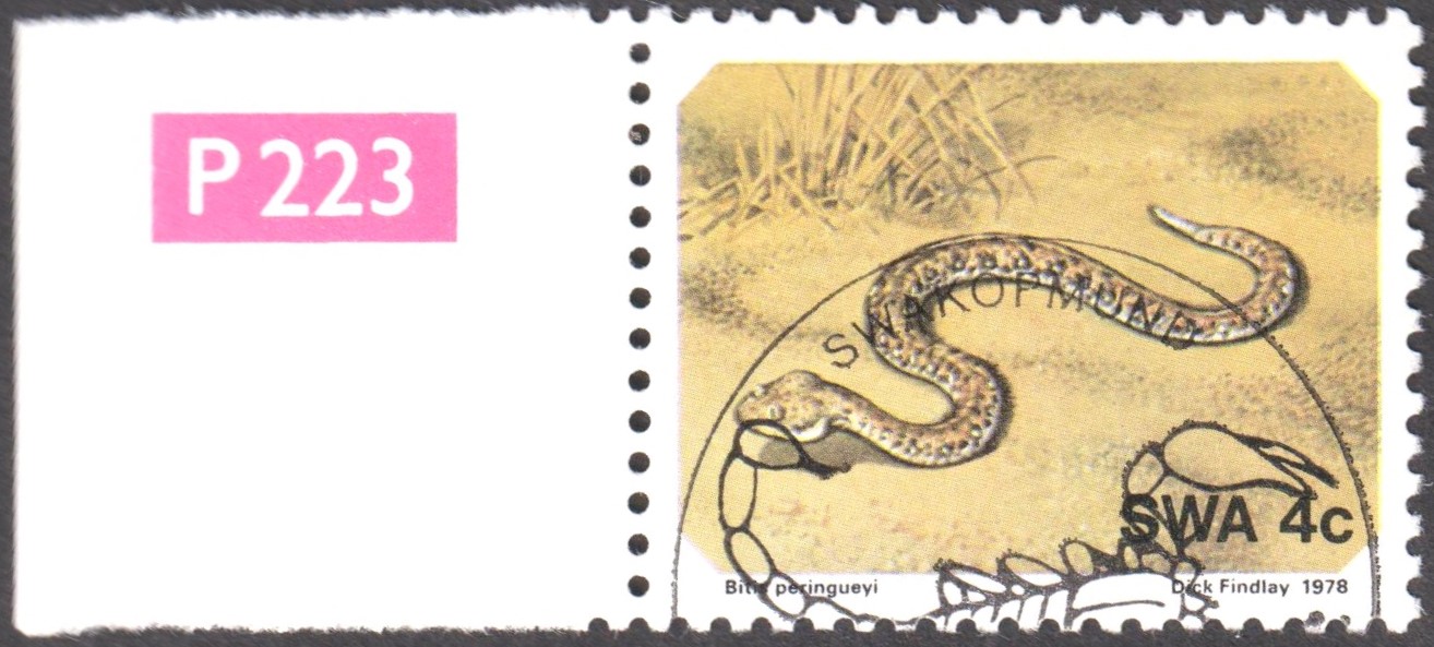 Namibia-Südwestafrika MiNr. 4403 zeigt eine Zwergpuffotter (Bitis peringueyi):