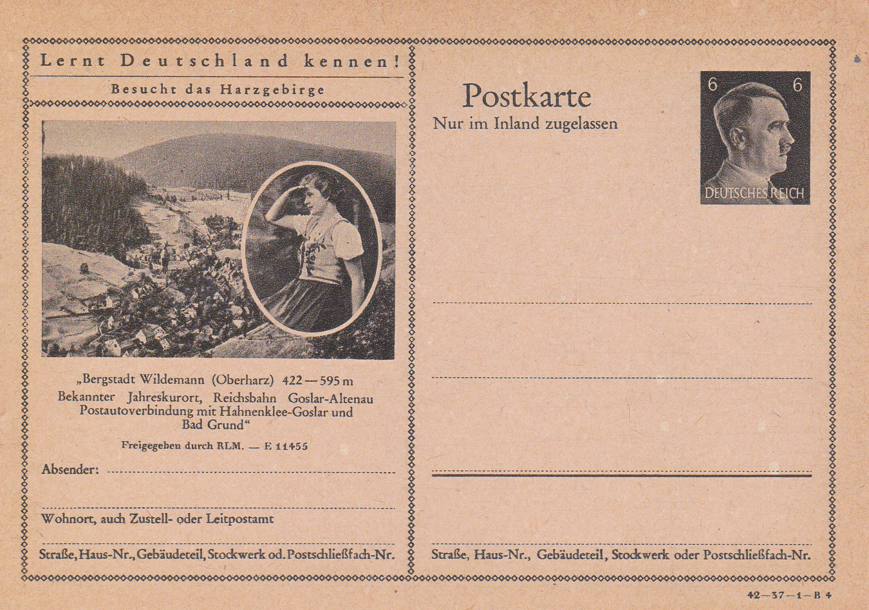 Die ehemals freie Bergstadt Wildemann (seit dem 1. Januar 2015 eine Ortschaft der Berg- und Universitätsstadt Clausthal-Zellerfeld, Landkreis Goslar in Niedersachsen (Deutschland)) stellt sich auf dieser Bildpostkarte (Serie 37 Bild 4) als Kurort vor.
